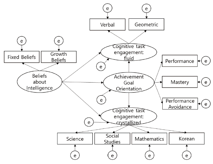 This study examined the structural relationships among elementary students’ beliefs about intelligence, achievement goal orientation, and engagement in cognitive tasks involving fluid and crystallized intelligence. Using data from ......